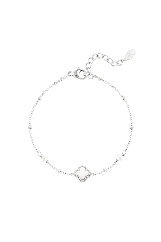 Klaver met Parels Armband, Stainless Steel, Zilver kleur
